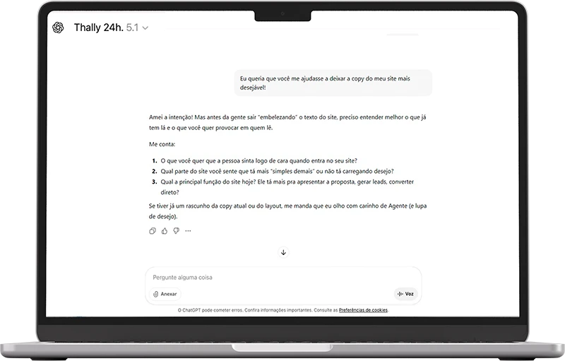 Nada de aulas longas e genéricas. Aqui, cada aula tem função.Você aprende, aplica e já sente o efeito, com apoio 24h do Agente do Desejo, nossa IA exclusiva que te ajuda a transformar seu dia a dia em conteúdo, todos os dias.