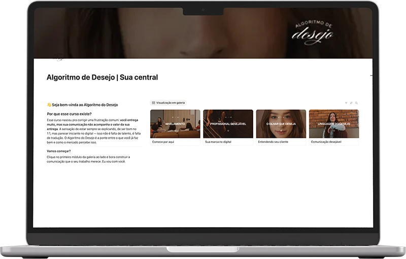 O Algoritmo do Desejo é o curso que transforma sua comunicação em um sistema de desejo previsível, com conteúdo prático, aplicável e profundo. Ideal pra quem tem pouco tempo, mas muito valor pra entregar.